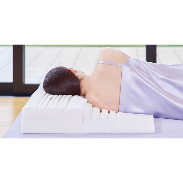 首・肩・背中まで支え、仰向け寝でも横向き寝でも、睡眠中の肩・腰の負担を軽減!